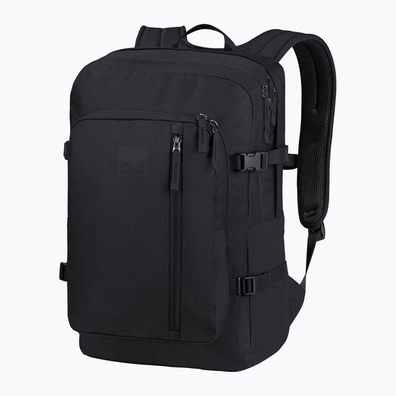 Der schwarze Wanderrucksack Jack Wolfskin Berkeley De Luxe mit einem Fassungsvermögen von 30 Litern eignet sich sowohl für den Alltag als auch für kurze Wanderungen.