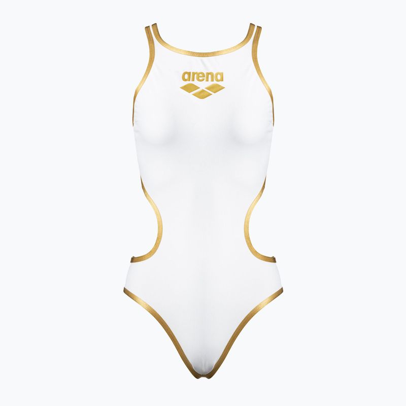 Der Damen-Einteiler arena One Biglogo One Piece white/gold ist die ideale Wahl für Training und Fitnessschwimmen. Dank der einzigartigen einschnittfreien Konstruktion, die die Nähte minimiert, bietet er maximalen Komfort und optimalen Gleiteigenschaften im Wasser. Der sportliche Stil zeichnet sich durch ein großes Logo und kontrastierende Abschlüsse aus, die die Silhouette betonen. Elegant und funktional kombiniert er perfekt Komfort mit einem auffälligen Design.