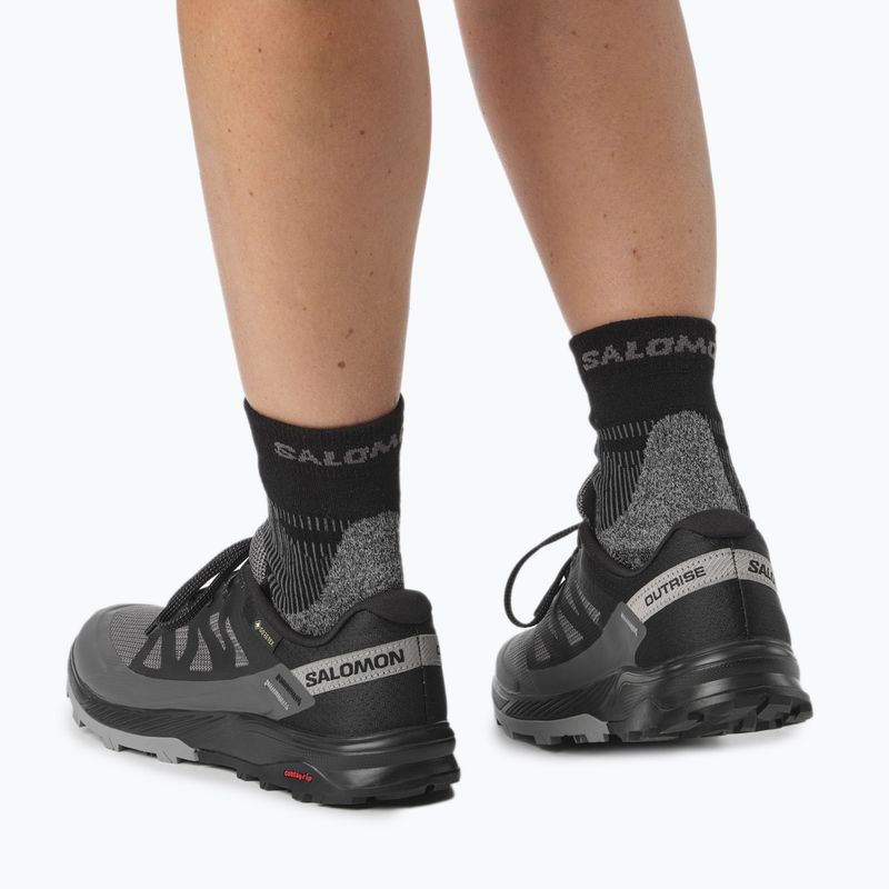 Der Salomon Outrise GTX Trekkingschuh ist die perfekte Wahl für Frauen, die die perfekte Kombination aus Stabilität, Komfort und Haltbarkeit suchen. Ausgestattet mit innovativer Technologie und hochwertigen Materialien, wird der Schuh in anspruchsvollem Gelände seine Leistung erbringen. Das Obermaterial aus Stoff sorgt dafür, dass der Salomon Outrise GTX Damenschuh sowohl belüftet und bequem ist, als auch die nötige Strapazierfähigkeit für Wanderungen auf Bergpfaden bietet. Darüber hinaus bietet die GORE-TEX-Membran wasserdichten Schutz gegen die Elemente auf dem Trail. Aus Rücksicht auf die Umwelt hat der Hersteller beim Salomon Outrise GTX PFC-freie Materialien verwendet. Die Sensifit-Technologie und der Schnürverschluss sorgen für einen passgenauen Sitz und bieten Stabilität und Komfort auf dem Trail. Die Fuze Surge-Zwischensohle kombiniert weiche EVA-Schaumstoffe mit weniger künstlichen Polymeren, was ihre Herstellung umweltfreundlicher macht. Außerdem sorgt sie für einen geschmeidigen und dynamischen Schritt, so dass Sie sich auch in unwegsamem Gelände bequem bewegen können.
