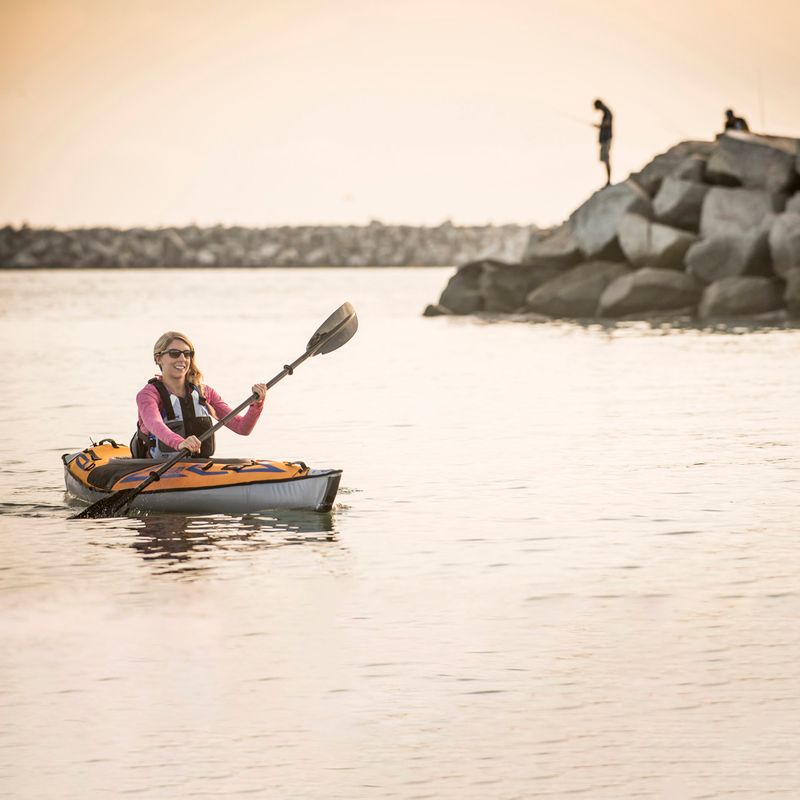 Ein weiterer Vorteil des Modells AdvancedFrame Sport sind die funktionalen Extras, die den Komfort bei der Nutzung erhöhen. Fortschrittliche Elemente wie ein integriertes Sicherheitsventil im Boden oder ein Federventil bieten nicht nur Bequemlichkeit, sondern auch Sicherheit beim Paddeln. Im Kajak finden Sie außerdem geformte Gummigriffe, D-Ring-Befestigungen, ein Staufach sowie eine Skeg-Spurfinne.