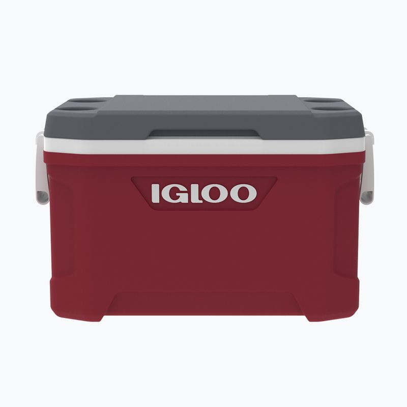 Igloo Latitude 52 - der ideale Partner für Expeditionen. Kippbare Griffe, ein Bungee-Seil für zusätzliches Equipment, kalte Getränke mit automatischen Bechern. Der Kühlschrank fasst bis zu 85 Dosen.