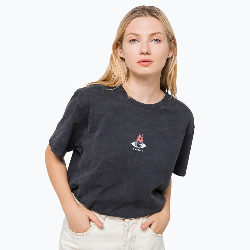 Kaotiko Washed Moon Sphynx Damen-T-Shirt schwarz