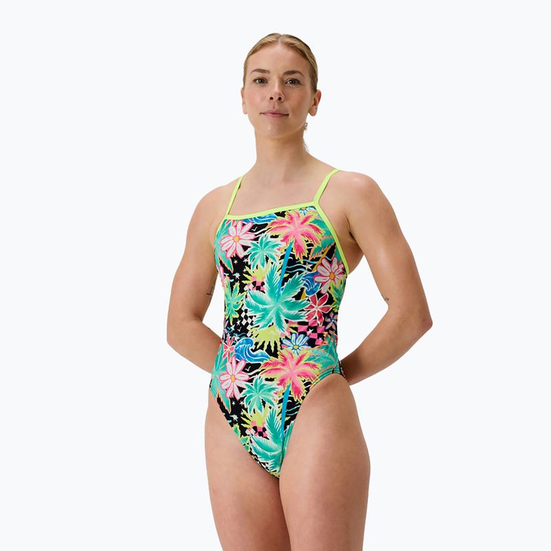 Damen-Einteiler Badeanzug Speedo FL Printed V-Back tropicana/schwarz