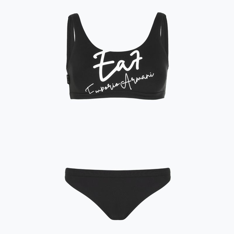 Zweiteiliger Damen-Badeanzug EA7 Emporio Armani Maxi Logo Bikini Top schwarz