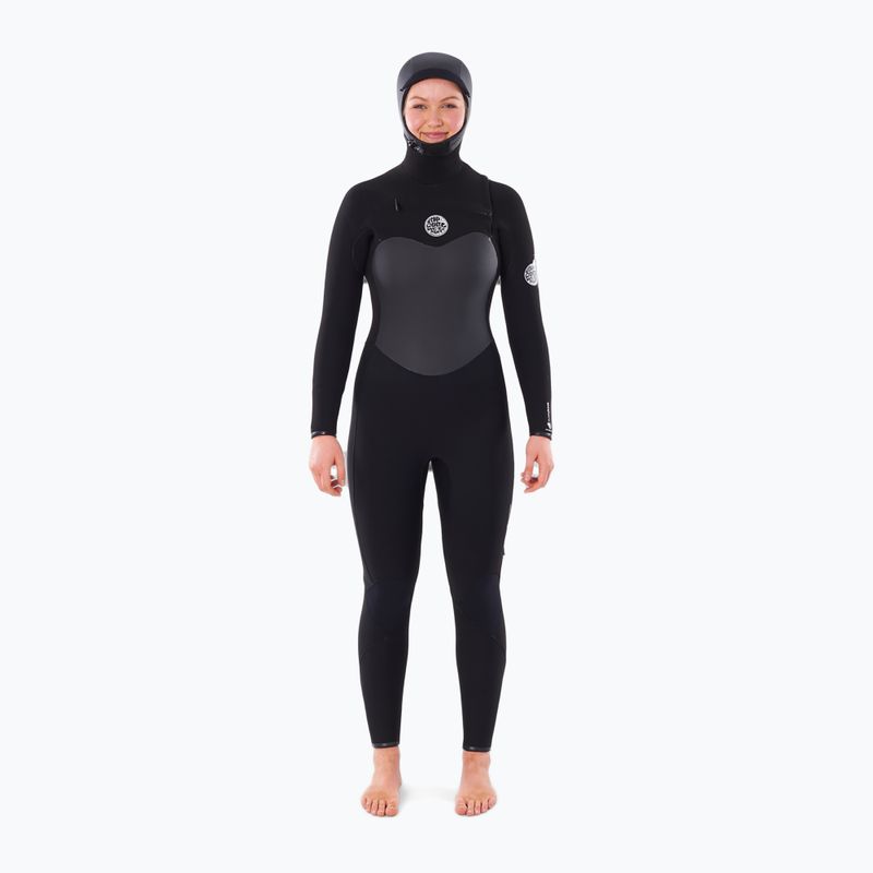 Damen-Neoprenanzug Rip Curl Flashbomb 6/4mm Hooded Chest Zip Steamer black (WSTYHG)