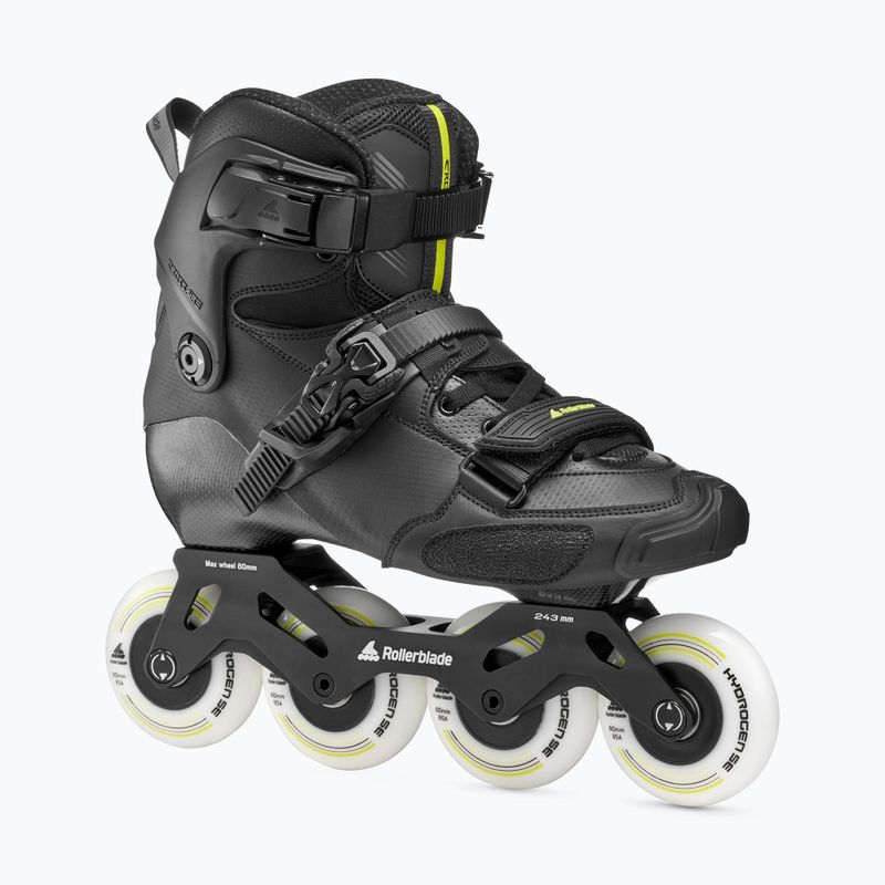 Männliche Rollerblade Crossfire LX Rollschuhe sind ein Slalom-Modell mit einem präzisen Rahmen von 243 mm, einem Canting Cuff-System und 80 mm/85A Hydrogen SE Rädern mit Twincam ILQ-9 Classic Plus Lagern. Sie bieten eine dynamische Kraftübertragung, Stabilisierung der Ferse und ein hohes Maß an Kontrolle.