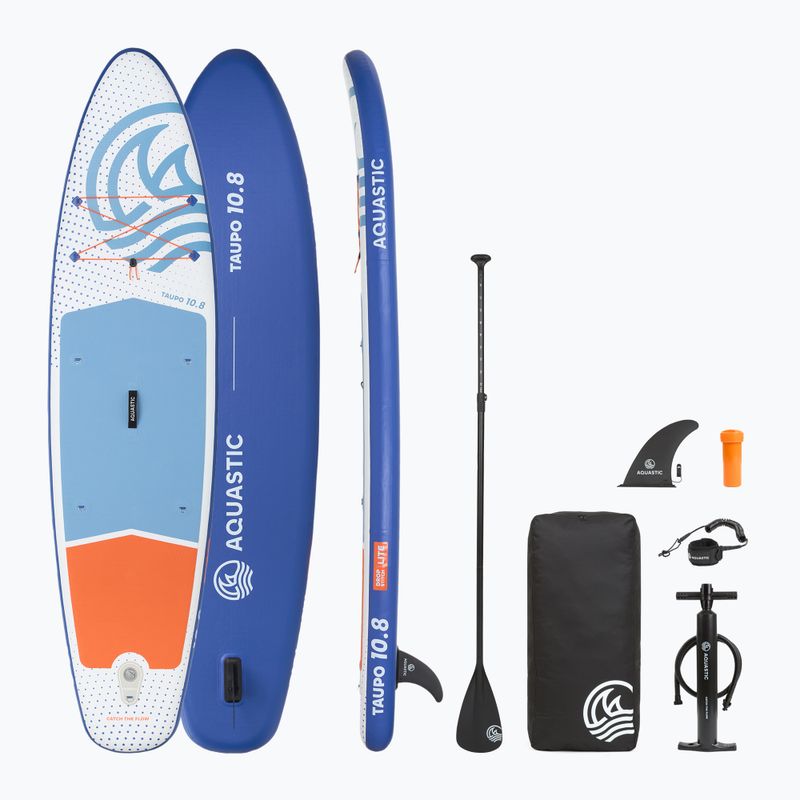 Das Aquastic SUP Taupo 10'8" Allround-Board verfügt über eine rutschfeste EVA-Oberfläche, die die Sicherheit bei Manövern erhöht. Das Set enthält alle Elemente, die für einen sofortigen Einsatz auf dem Wasser erforderlich sind.